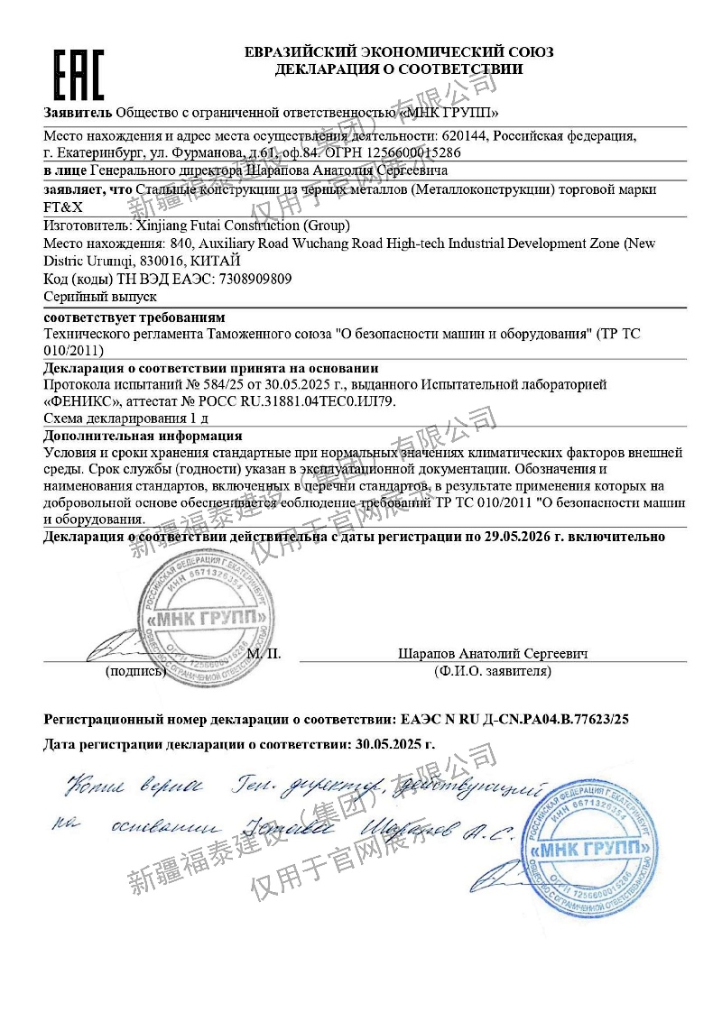 新疆福泰建设(集团)有限公司(以下简称:福泰集团)是江苏严氏集团在新疆投资的全资公司,是一家集设计、生产、安装为一体的综合型较大规模钢结构企业,扎根新疆。感恩兵团,专注钢结构事业25年。拥有诸多经验丰富、技术精湛的管理团队,致力于做新疆乃至全国值得信赖的钢结构综合服务商。