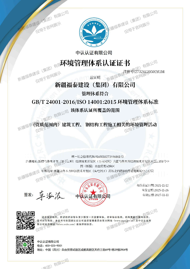 福泰集团坐落于乌鲁木齐市经济技术开发区高铁北四路889号爱地新锐中心。集团内设12个职能部门,下辖3个钢结构产业子公司、4个其他产业公司、1个投资公司。企业注册资本8000万元,具有国家颁发的钢结构壹级施工资质和钢结构制造壹级资质,是新疆现有为数不多拥有双壹级资质的钢结构企业,并拥有建筑工程,市政公用工程,城市道路照明总承包资质证书。现已形成“设计研发+生产制造+项目建筑总承包+绿色建材+建筑产业互联网平台”的“五位一体”绿色建筑集成新模式。
